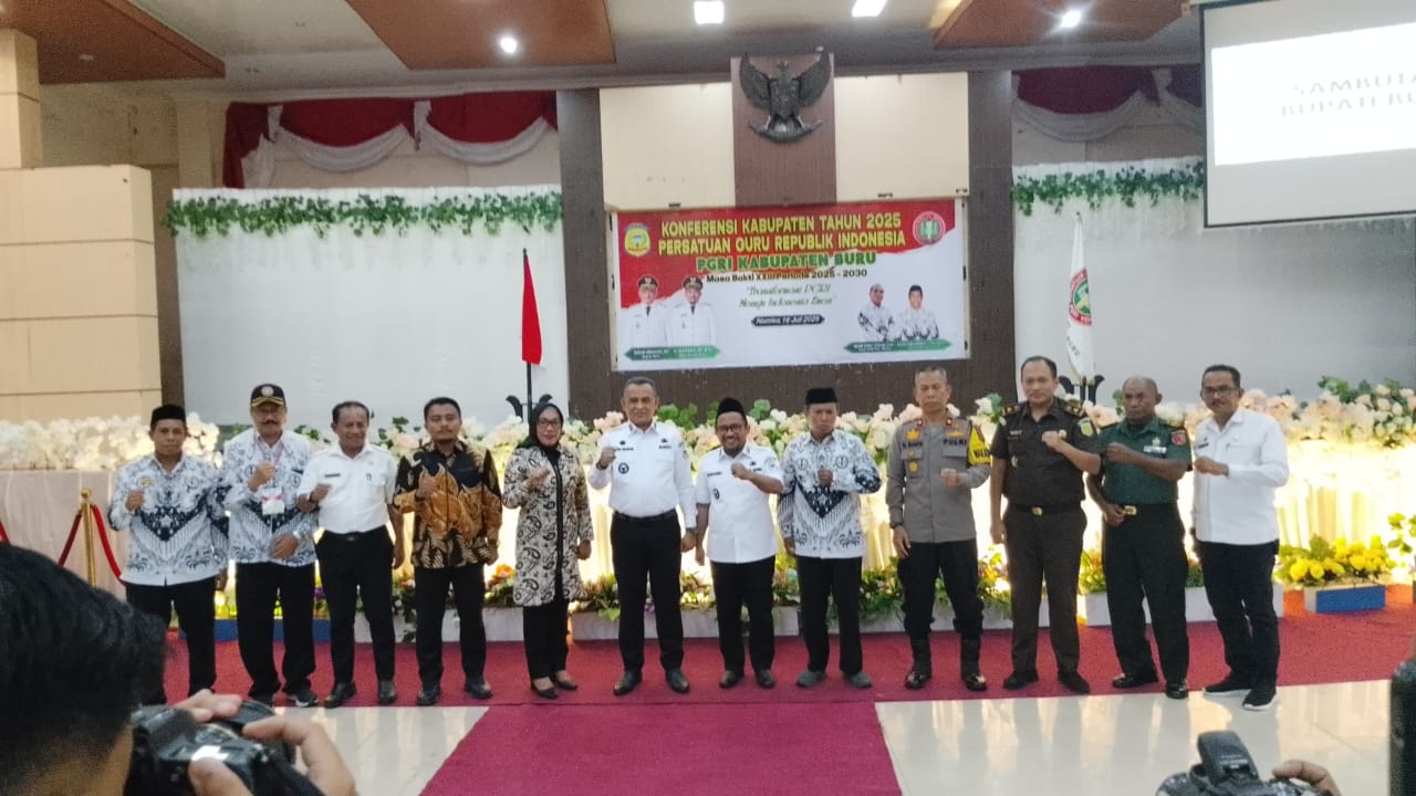 Bupati didampingi Wakilnya, Sudarmo, SP. M.Si. hadir pula wakil ketua PGRI Maluku, dan Forkopimda Pemda Buru. Konferensi PGRI berlangsung di Aula Kantor Bupati, Rabu, 16 Juli 2025.