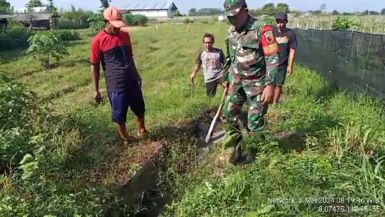 MALUKUBISA.COM, Blitar – Dalam upaya menciptakan sanitasi sehat dan upaya meningkatkan sinergitas dan kerjasama yang baik di wilayah binaannya, Sertu Yoyok Setiawan Babinsa Koramil 0808/04 Sanankulon, pagi ini bersama warga setempat, bergotong-royong melaksanakan pembersihan saluran irigasi di lahan persawahan Desa Sumberjo Kecamatan Sanankulon Kabupaten Blitar, Selasa (7/5/2024).