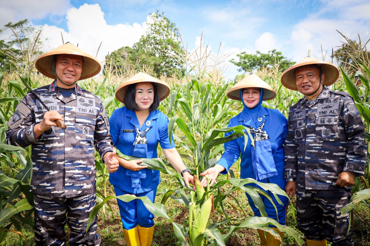 Brigjen Suwandi didampingi Ketua Korcab IX DJA III Ny. Febi Suwandi dan pengurus, serta PJU dan Kasatker menghadiri Panen Raya Jagung dan Pare dalam rangka Ketahanan Pangan yang diselenggarakan Lantamal IX Ambon.