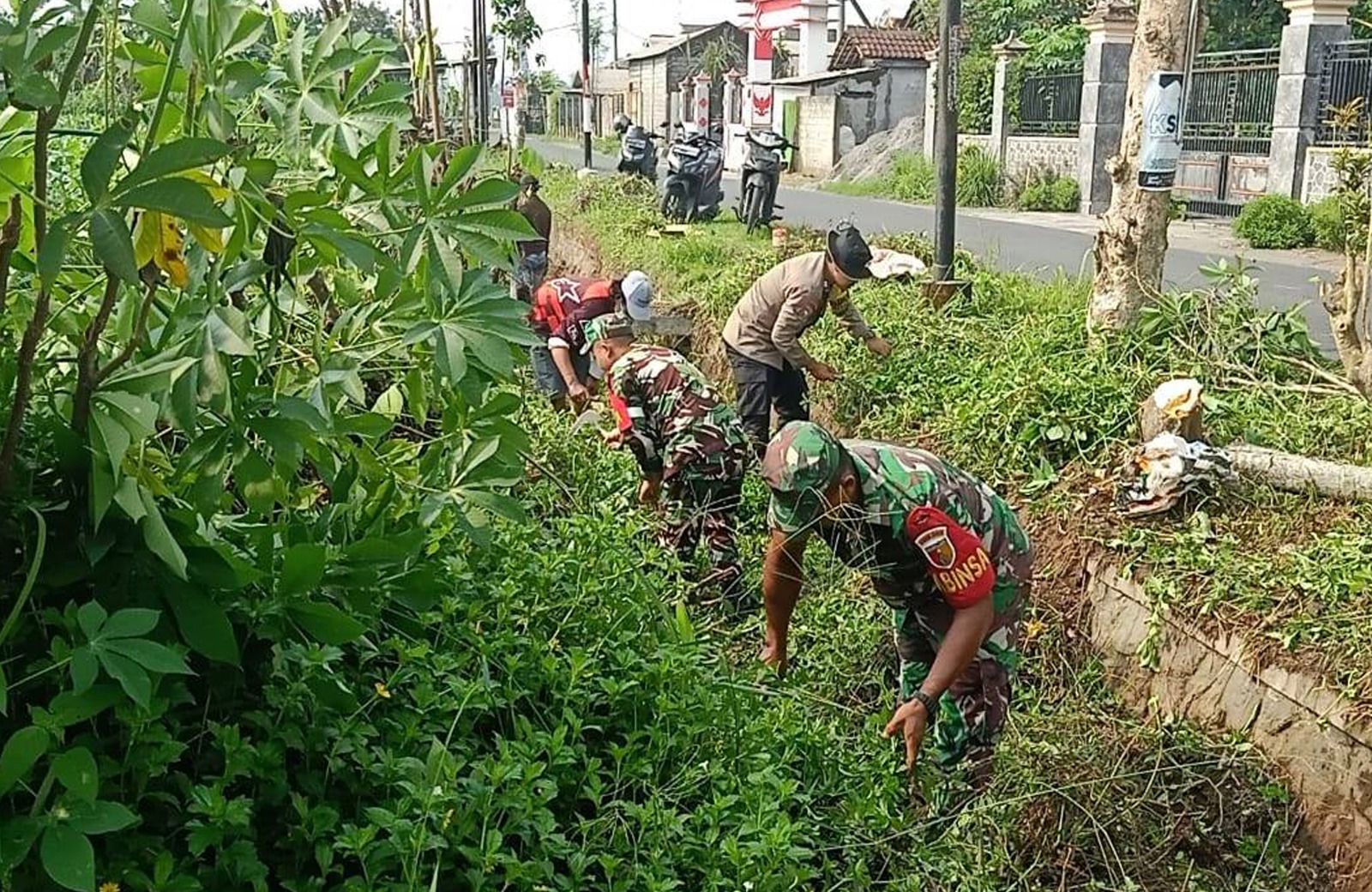 Kondisi tersebutlah yang mendorong Koptu Jumanto sebagai Babinsa Desa Kolomayang untuk mengajak masyarakat bergotong royong membersihkan parit, baik itu mengangkat sampah, angkat tanah, maupun rumput liar yang tumbuh diparit dan di kanan kiri jalan Desa