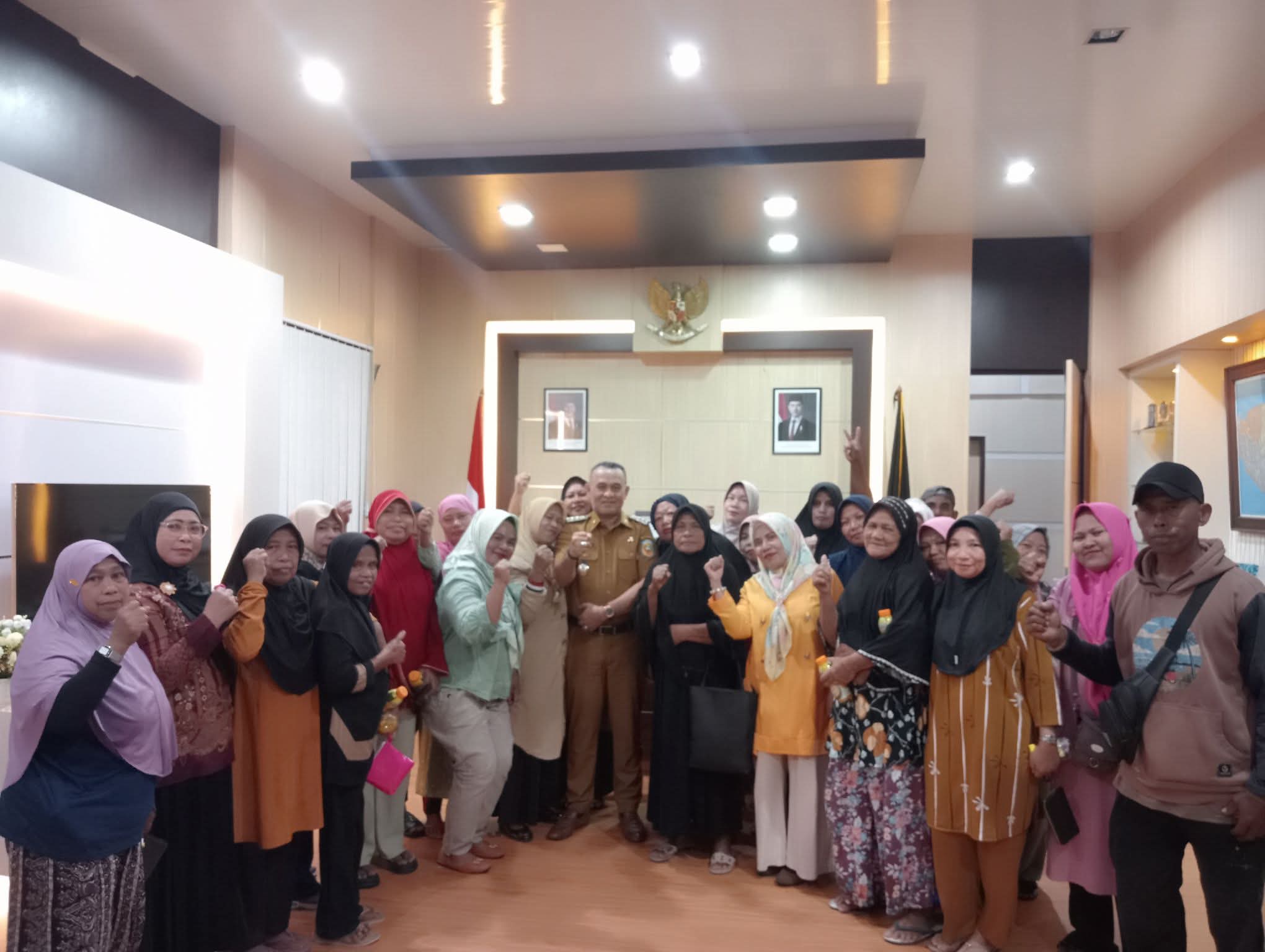 MALUKUBISA.COM, Namlea. Bupati Buru Ikram Umasugi, SE dengan senang hati Menerima Kunjungan ibu – ibu petugas kebersihan jalan dalam kota Namlea, berlangsung di kantor Bupati, Senin, 14/7/2025.